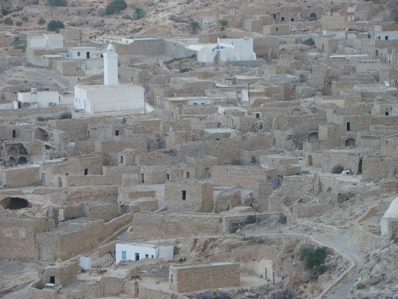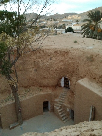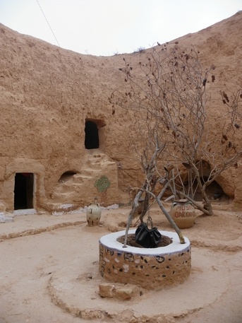 Matmata, famoso por sus casas trogloditas. Son patios circulares excavados en el suelo de unos diez metros de diámetro desde los que se tiene acceso a entre cuatro y seis estancias donde vivían diversas familias. Aunque hay varias en el pueblo, el Hotel Sidi Driss es el mas famoso por haber servido de plató para varias entregas de "La guerra de las galaxias". Tras él hay otra casa convertida en Museo Beréber, 3 TND, rústico y sin adornos, esta muy alejado de los estándares europeos.