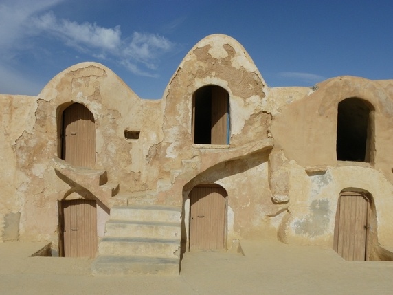 Ksar Haddada. En julio de 1997 George Lucas lo convirtió en la ciudad de Mos Espa en el planeta Tatooine, para el rodaje de "Star Wars Episode I: La amenaza fantasma". Durante la grabación parte del