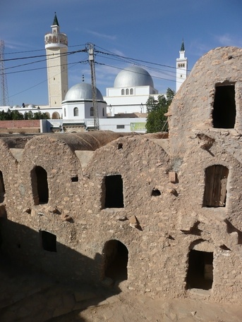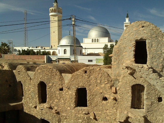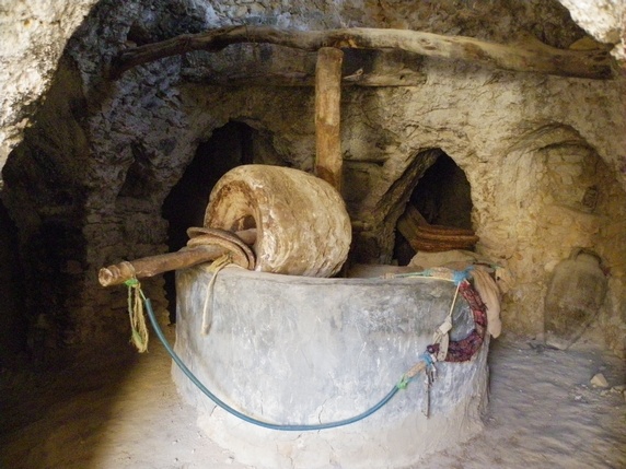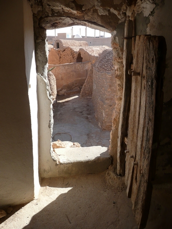 ghorfas de dos plantas, hay una pequeña mezquita con inscripciones en paredes y techo, y un molino de aceite en bastante buen estado. Un señor que se presenta como el guarda nos da una vuelta por el recinto y nos cuenta cuatro anécdotas. Propina 10 TND.