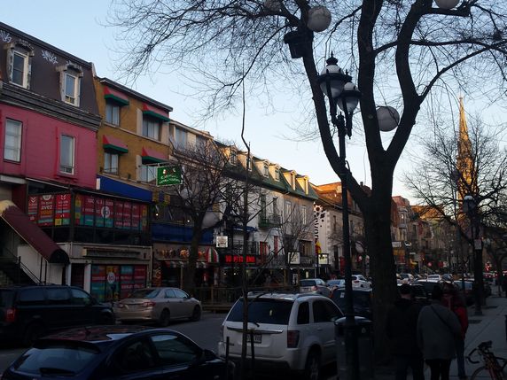 Barrio Latino, en los alrededores de UQAM y Saint-Denis St, conocido por sus teatros, ambiente artístico, boutiques, restaurantes y cafés, se respira ambiente joven y desenfadado; la