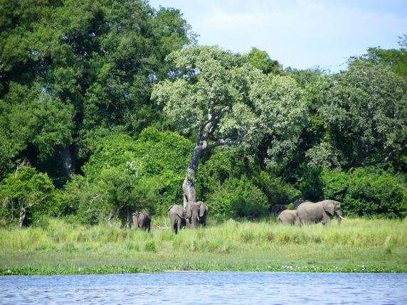 06:30 Desafortunadamente el mejor momento es durante los fríos amaneceres. Un ranger sube con nosotros a la furgoneta. Cruzamos el río, e iniciamos un safari que se prolongará durante tres horas y media. Elefantes, jirafas, antílopes varios, un león, búfalos, pájaros por doquier, y mucho mas, nada que envidiar a Tanzania. Tanto nos entretenemos mirando animales que perdemos el ferry que tiene que llevarnos de vuelta a la otra orilla.