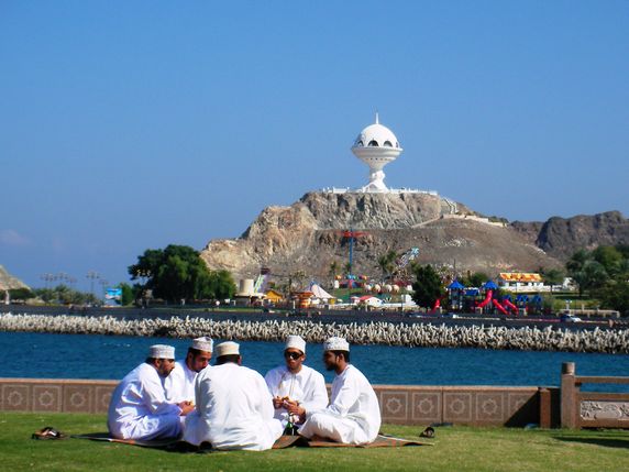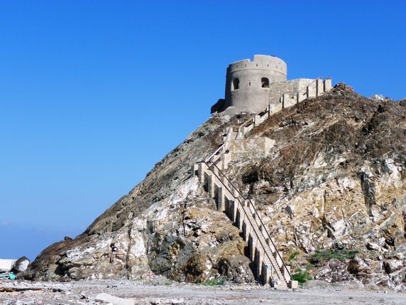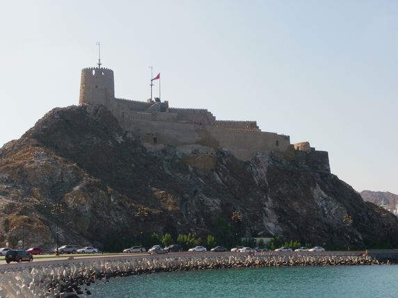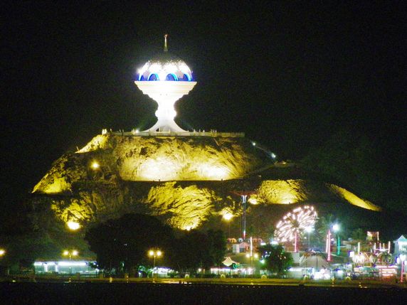 Atalaya (el quemador de incienso mas grande del mundo, y sin duda el monumento mas extravagante de Omán) desde donde se tienen unas fantásticas vistas del puerto,