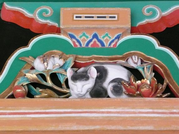 Nemuri-Neko (520¥), un gato de madera grabado en un dintel, famoso en todo Japón ya que dicen parece real. Pasando bajo el gato empieza un largo tramo de escaleras flanqueado por cedros gigantes que nos lleva hasta la