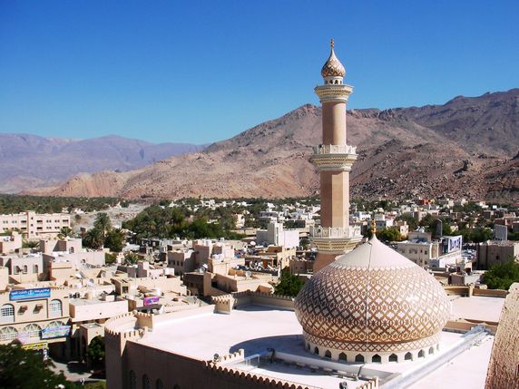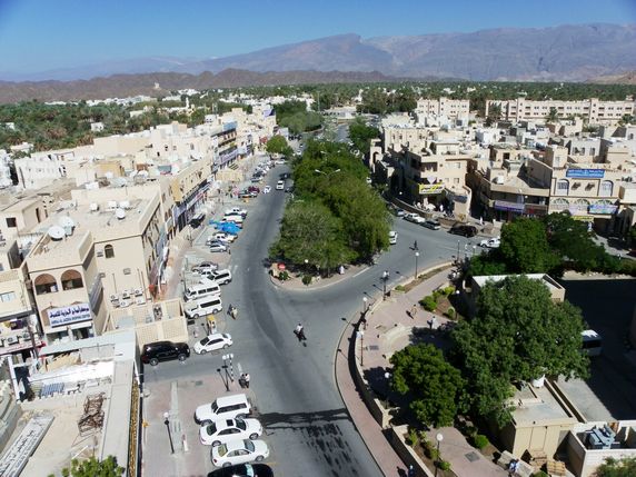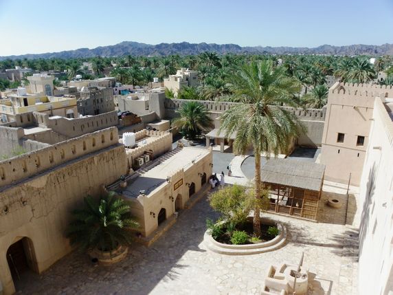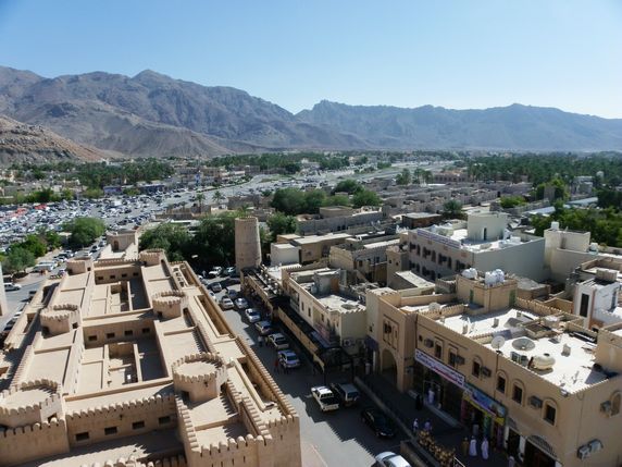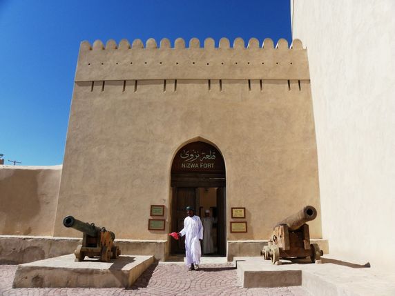 A 25 km de allí, rodeada de montañas, se encuentra Nizwa. Una pequeña y animada ciudad, que fue capital de Omán durante los siglos VI y VII. En tiempos había sido un importante centro comercial, al hallarse en un punto estratégico en la ruta de caravanas entre Muscat y Doha; así como feudo del conservadurismo religioso, siendo su Gran Mezquita un importante centro de enseñanza islámica. Por su ubicación es el lugar ideal desde donde organizar excursiones a las cercanas Bahla, Jabrin y las Jebel Shams.