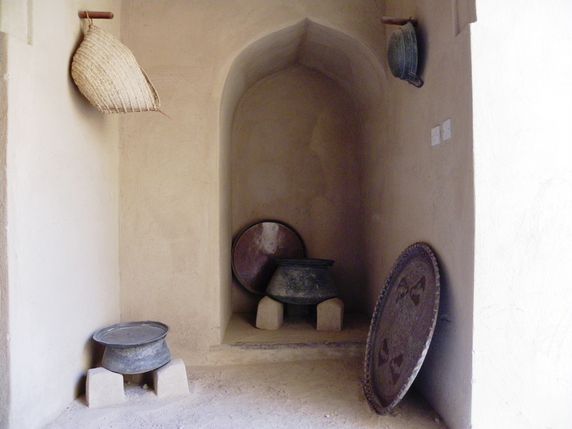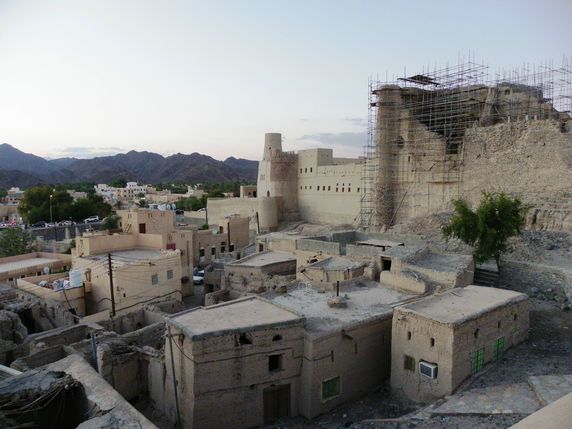 Castillo. Es la fortificación mas antigua del país, y los omaníes lo ven como su fuerte mas significativo. En restauración desde 1993, su construcción sobre una pequeña colina desde la que se domina toda la zona, fue iniciada por los persas unos 1400 años atrás, durante la época. de prosperidad del oasis de Bahla bajo el control de la tribu Banu Nebhan. Para su construcción se usó piedra, abobe, troncos de palma, paja, estiércol y yeso. Sus muros hacían 11km de largo, tenían 16 entradas y 132 torres de las que solo permanecen seis.