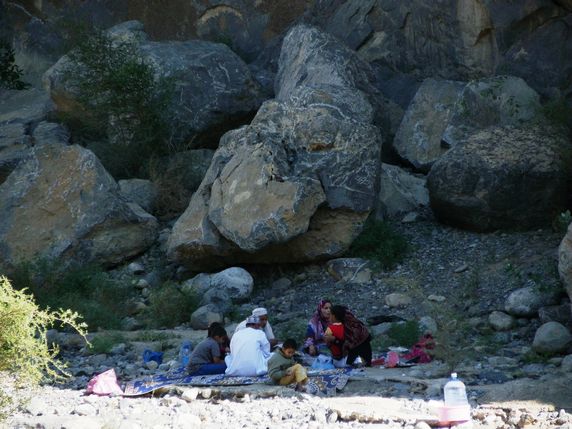 falaj y la presa. Toda la zona esta llena de familias omaníes haciendo camping, que nos saludan o salen a nuestro encuentro invitandonos a tomar a té.