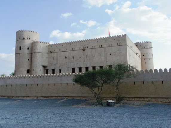 Construido por Imam Sultan bin Saif al Yaarubi en 1668, el diseño del fuerte refleja el considerable avance hecho en materia de fortificaciones militares y el uso del mortero con fines militares durante la era Yaarubi. Los muros son redondeados y robustos, diseñados para soportar una lluvia de disparos de mortero, una táctica habitual en aquella época. Tardó 12 años en construirse, aparentemente con materiales saqueados de otros fuertes como botín de guerra. Dos cañones custodian la entrada a la fortaleza que se abre en un verdadero laberinto de habitaciones, salas de techos altos, puertas, terrazas, escaleras estrechas y pasillos. Pero su característica más notable es su colosal torre circular de 36 mts de diámetro y 30 de altura, que le daba un aura de invencibilidad.