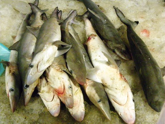 souq de pescado que esta lleno de productos frescos. Observamos con sorpresa que venden crías de tiburón.
