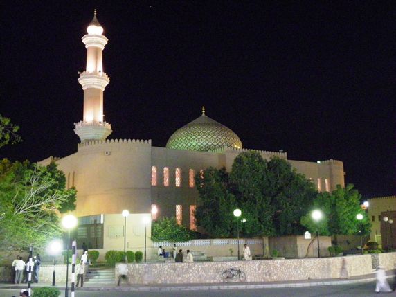 Desde el castillo se tienen unas fantásticas vistas de Masjit Sultan Qaboos, la mezquita, probablemente la imagen mas conocida de Nizwa. Construida por Abdulla bin Mohammed, tiene una llamativa cúpula dorada y azul. Esta vetado el paso a no musulmanes. Al ser viernes y por tanto día de oración, cuando salimos de visitar el castillo todos los puestos del mercado están cerrando. Decidimos dejar el souq para mañana.