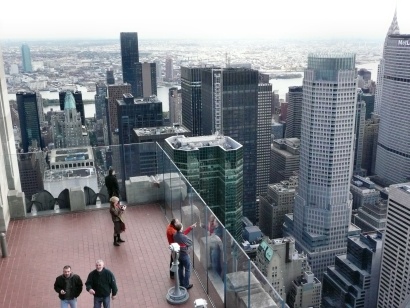 Rockefeller Center), calle 50 entre 5th y 6th avenida. Acceso junto a la pista de patinaje y su imponente árbol de Navidad. Precio: 20$. Hay tres niveles de terrazas que ofrecen vistas panoramicas de 360 grados. Desde aquí se tiene una vista completa de Central Park y el UpTown. El ascensor que nos sube hasta la planta 67, primera terraza, tiene el techo transparente y el agujero del ascensor esta iluminado con luces psicodélicas, dando la sensación, por la velocidad con la que sube, de estar en una lanzadera espacial.