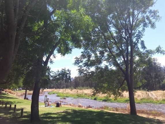 Berg River Resort, 430 rands. Camping grande y completo. Admite pases de día para disfrutar de sus instalaciones. Piscinas con socorrista, circuito mini cars, pistas de patinaje, tobogán de agua, mini golf, y cientos de metros verdes a orillas de un río manso y poco profundo ideal para remar. En nuestra parcela caben dos tiendas y dos coches. Hay