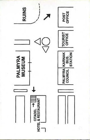 Palmira se encuentra en el corazón del desierto, al lado de un frondoso oasis de palmeras. Con calor y arena por doquier, el pueblo discurre alrededor de una calle principal sin asfaltar donde se encuentran la mayoría de hoteles y restaurantes. El hotel Citadel, donde nos hospedamos, nos propone un tour por 500 SL que incluye desplazamientos en coche y entradas al castillo y las tumbas, desplazamiento desde ellas al Templo de Bel y luego al hotel. Aceptamos.