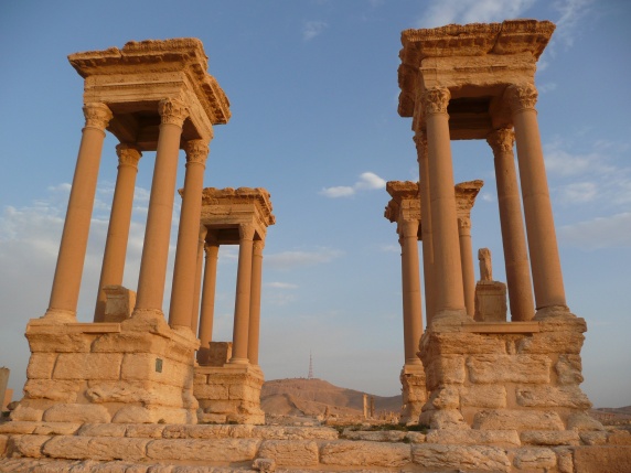 . El sol va subiendo poco a poco por encima del oasis que hay junto al Templo de Bel. También sube la temperatura. Por suerte el fuerte viento evita que se dispare la sensación térmica. Apenas encontramos cuatro o cinco turistas a estas horas.