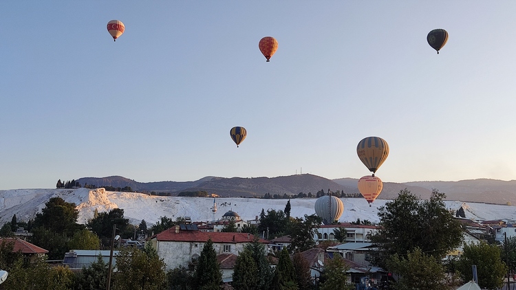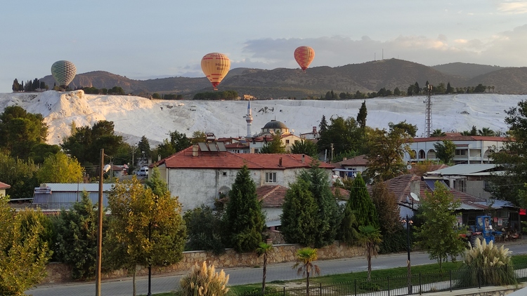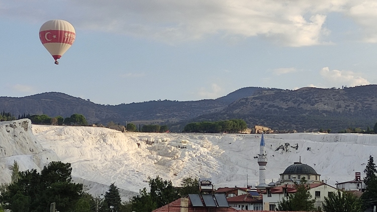 Pamukkale Köyü es una aldea pequeña con muy poco turismo, la mayoría llegan en excursiones organizadas desde Kuşadası. Es un lugar donde dejar pasar el tiempo con calma, disfrutar de sus atractivos turísticos y dar un paseo en globo. La oferta hotelera es amplia, también la de restauración donde además de los locales turísticos no es difícil encontrar algunas joyas locales.