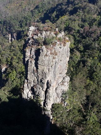 Pinnacle, donde una torre rocosa sobresale más de 30 mts sobre el denso bosque que forma la garganta de Driekop. A unos pocos kilómetros se encuentran las espectaculares vistas de