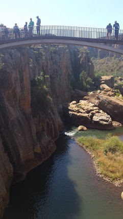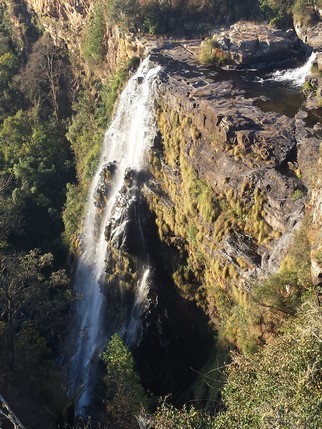 Nuestra primera parada es en Mac Mac Falls (acceso 10 rands), son dos impresionantes cascadas gemelas que caen desde una altura de 56 mts. Originalmente era una cascada, que se dividió en dos cuando los mineros de la zona durante la fiebre del oro dinamitaron el lecho. A unos centenares de metros de aquí, la corriente forma una serie de piscinas de agua cristalina y poco profunda llamada