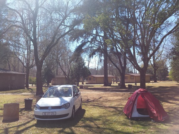 aeropuerto de Johannesburgo, y tras recoger el coche, proceso que apenas nos tomó quince minutos, tomamos la N12 guiados por el GPS. Es una carretera de tres carriles en las cercanías de Johannesburgo, que luego pasa a dos, y tras Monrose Pass, a 220 km del aeropuerto, un solo carril con largos tramos en obras, en lo que parece la construcción de un segundo carril. Siguiendo la R359 y la R37, dos carreteras de montaña con muy poco tráfico, donde los coches se acumulan detrás de camiones articulados con doble bañera o cargados de leña que abundan por aquí.