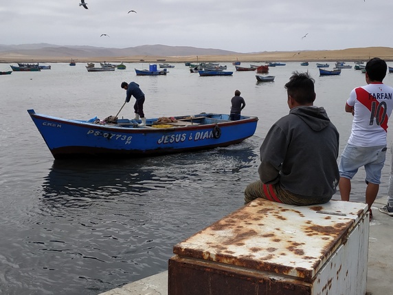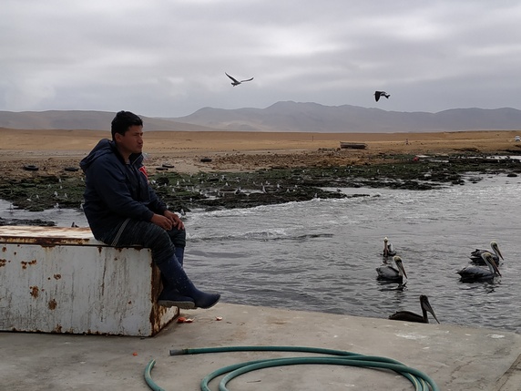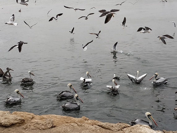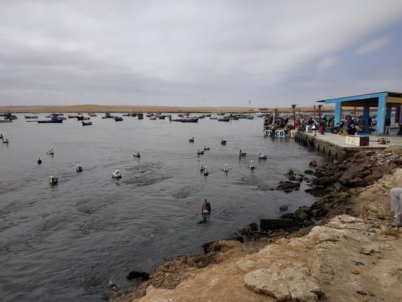 El tour empieza dando un paseo hasta el muelle del que salen los ferries turísticos a las islas. Por el camino recogemos a otros turistas. Al llegar al puerto hay que pagar las tasas portuarias combinadas por las islas y la reserva nacional que cuestan 22 soles.