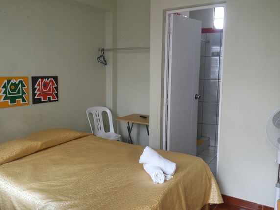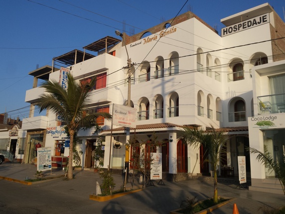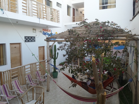 Paracas Backpackers House, 85 soles. Habitación doble, pequeña pero correcta, amplio baño privado, wifi, desayuno no incluido. Dispone también de dormitorios, una cocina de uso compartido, comedor, zonas
