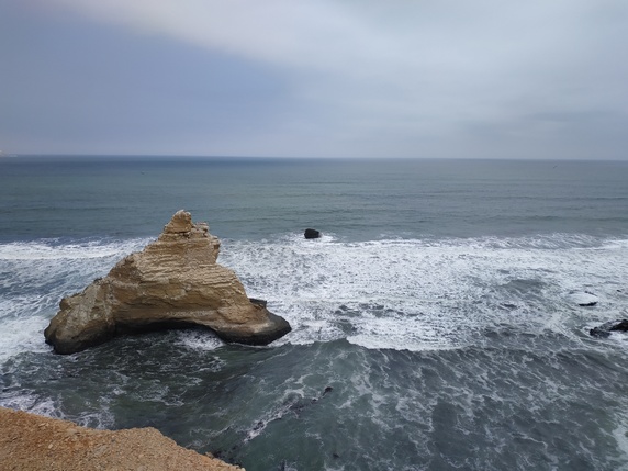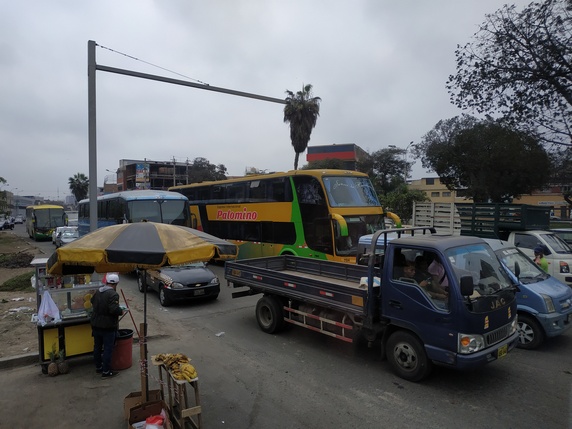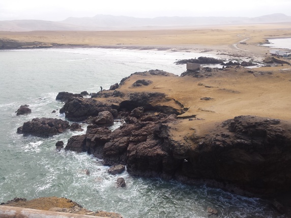 PerúBus / Soyuz, billete 38 soles, compañía barata de autobuses VIP, la cara es Cruz del Sur. Asientos anchos, cómodos, con buen grado de reclinación y bastante seguro. Dan un pequeño tentempié, hay cuenta kilómetros a la vista de los pasajeros para vigilar que el conductor no rebase los 90 km/h que marca la ley. El trayecto son 3h30, todo él es atravesando un desierto costero donde se suceden chabolas en los lados de la carretera, no parece que viva mucha gente en esta zona.