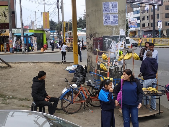 Desayunamos en el hotel, dos platos de huevos con tostadas, fruta, zumos y te, 37 soles. Ayer compramos por internet los billetes de autobús a Paracas, que sale a las 10h. Damos un último paseo por Lima. Compramos en puestos callejeros un kilo de mandarinas (2 soles) y caña de azúcar (2 soles), y entramos por casualidad en la