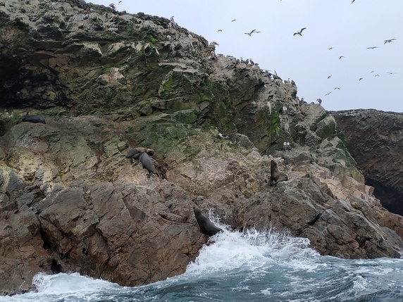 En las islas hay miles de pájaros, como gaviotas, cormoranes, pelicanos, o buitres, que generan toneladas de guano, cuyo intenso olor te acompaña toda la visita. El guano es un excelente fertilizante, y cada ocho años una empresa se encarga de extraerlo para su venta. En las rocas pueden verse multitud de lobos marinos, se distinguen de las focas porque tienen orejas, y pingüinos.