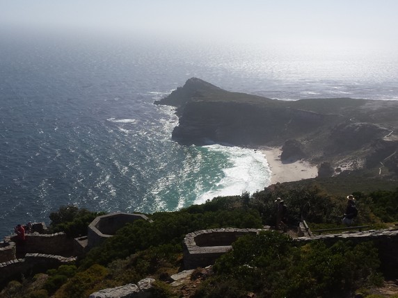 Reserva Natural Cabo de Buena Esperanza (acceso 135 rands, gratis con Wildcard), popularmente considerado el punto de unión de los océanos Atlántico e Indico, aunque ese honor le pertenece realmente al cabo Agulhas. La reserva natural ocupa un área de 7.750 hectáreas y 40 km de costa. Como es imposible recorrerla toda nos centramos en sus atracciones más populares: Cape Point, donde sobre unos acantilados de 200 mts sobre el mar se encuentra el Faro, al que se puede acceder por una larga caminata o en funicular (65 rands); y el Cabo de Buena Esperanza, donde desde el parking salen algunos caminos de tierra que permiten hacer cortos paseos por la zona. Es un lugar ideal para ver ballenas, pero no estamos en temporada, y nos conformamos con algunos lagartos y babuinos, y numerosos damanes, un roedor africano que parece un cruce entre marmota y conejo de indias.