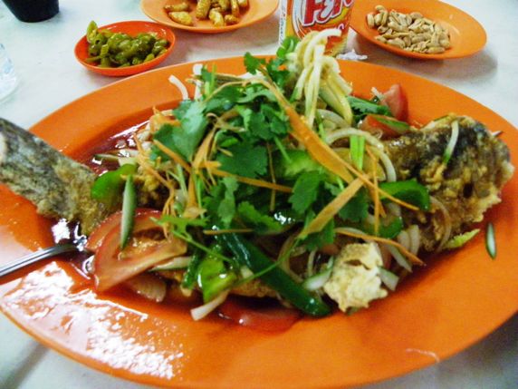 Rest Tian Kee. Sweet & sour (60rm/kg), white noodles, fanta naranja y Carlsberg. 49,20rm. Restaurante chino muy popular donde sirven delicioso pescado y noodles. De visita obligada.