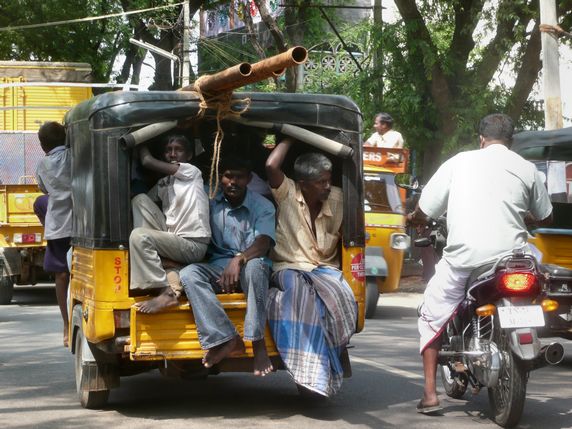 Contratamos un taxi que tiene que llevarnos hasta Kumily, un pequeño pueblo a las puertas del Parque Natural de Periyar. El propio hotel nos lo proporciona por 1.600 INR. No regateamos. después de hora y media de camino nos detenemos a la entrada de un pueblo. Parece ser que ha habido unos disturbios entre estudiantes, en la prensa hablan estos días de revueltas en Chennai, y algunas piedras han alcanzado coches y autobuses. Esperamos un rato a que se calme la situación. Jahir, un amigo del driver, nos recoge en la frontera entre Tamil Nadu y Kerala para llevarnos al hotel. Es guía oficial de la asociacion de turismo de Kerala", y quien organizará todas nuestras actividades en la zona.