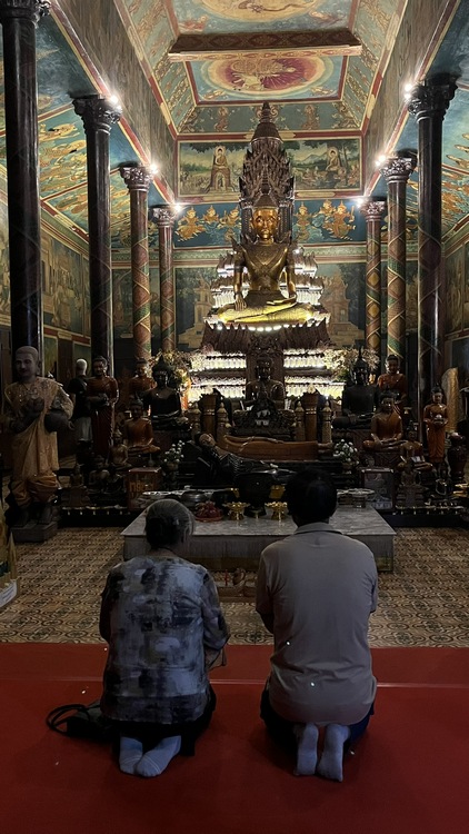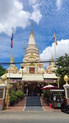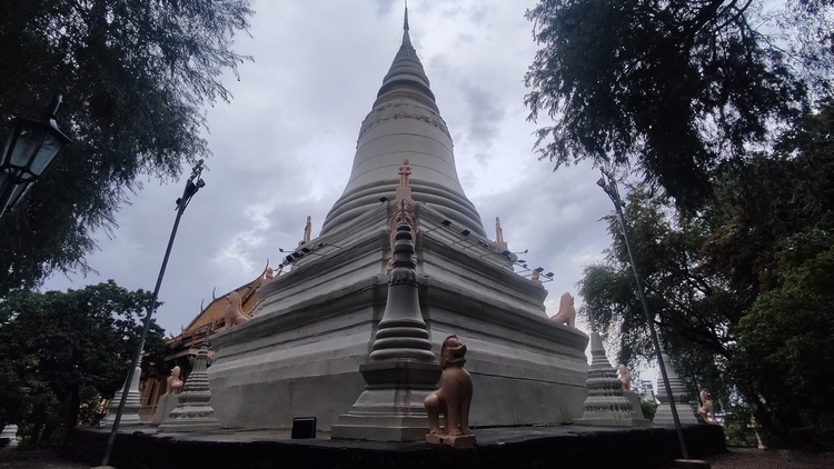 Construido en lo alto de una colina, el Wat Phnom (acceso gratuito) es el templo más importante de la ciudad. De hecho, se trata de un santuario fundado por Daun Penh (Abuela Penh), una viuda adinerada que en 1372, rescató del río un tronco de árbol koki con cinco estatuas de Buda en su interior, y ordenó elevar una parte de su propiedad para construir un templo que albergara las estatuas. Con el paso del tiempo el santuario se ha ido ampliando, detrás de él hay una enorme stupa de 42 mts de altura que alberga las cenizas del rey Ponhea Yat, fundador de la ciudad. Alrededor hay varias pagodas y stupas, y un delirante santuario dedicado a Preah Chau, cuya estatua esta protegida por unos guardianes con bates de hierro.