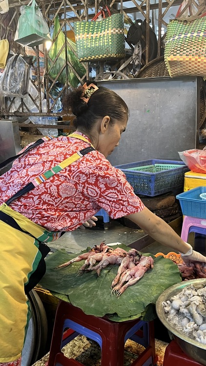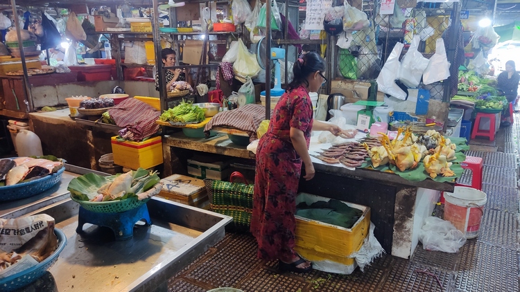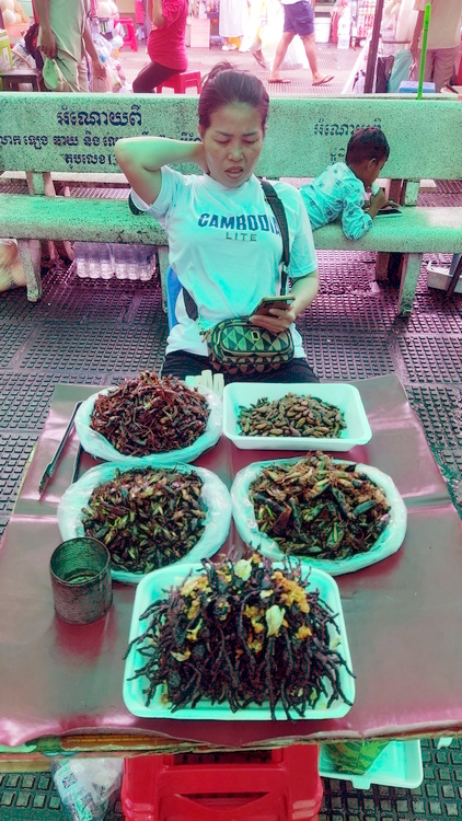 Uno de los puntos de visita obligada en Phnom Penh es el Central Market. Está ubicado en un edificio art deco de color amarillo construido en 1937, tiene una cúpula central de 26 mts de altura y cuatro largos brazos en forma de aspa, que albergan varios pasillos donde se venden gran variedad de productos. Las galerías son amplias y de altos techos, conservan una agradable temperatura, y son cómodas para pasear. Un lugar ideal para comprar todo tipo de souvenirs, camisetas, batiks, pimienta de Kampot... también tiene una amplia sección de comida fresca: pescado, carne, fruta y verdura. En los alrededores hay numerosos restaurantes y puestos de comida callejera, es una buena zona para buscar nuevos sabores.