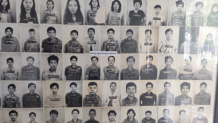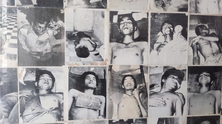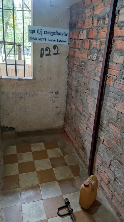 Ahora uno de esos sitios que nunca debió existir pero que por desgracia abundan, una visita obligada, para aprender de la historia y evitar que se repita. Tuol Sleng (5$ adult fee, 5$ audioguía español), también conocido como Oficina S-21, fue un centro de interrogación, tortura y ejecución creado por el régimen de los jemeres rojos para eliminar a los enemigos del Estado de la Kampuchea Democrática. Estaba ubicado en las instalaciones de un instituto, funcionó durante casi tres años, por el pasaron unas 14.000 personas, de las que solo salieron con vida 12 personas, 7 adultos y 5 niños, que se encontraban allí cuando las tropas vietnamitas liberaron la ciudad. El centro esta casi intacto, se conservan alambradas de espino, celdas y sistemas de tortura. Una gran exposición fotográfica ocupa las estancias, ampliamente documentada, nos permite conocer la magnitud del genocidio de Pol Pot. En el patio hay un par de supervivientes que venden los libros en los que cuentan su experiencia.