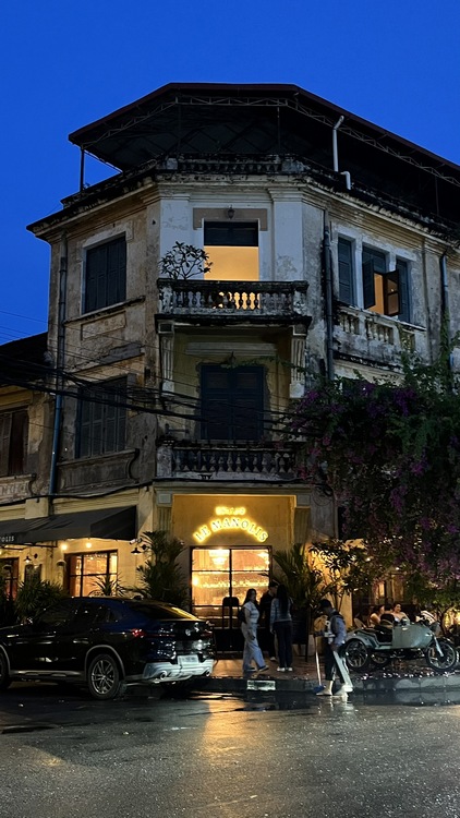La última noche en Phnom Penh, de vuelta de las islas, antes de coger un vuelo a primera hora hacia Bangkok, pensamos en buscar un hotel junto al Mercado Central para acabar de hacer compras. Fue un error, los hoteles hay que cogerlos junto al río y lo más cerca posible del Royal Palace, allí es la zona donde esta la acción por la noche, y allí están los que tienen mejores servicios.