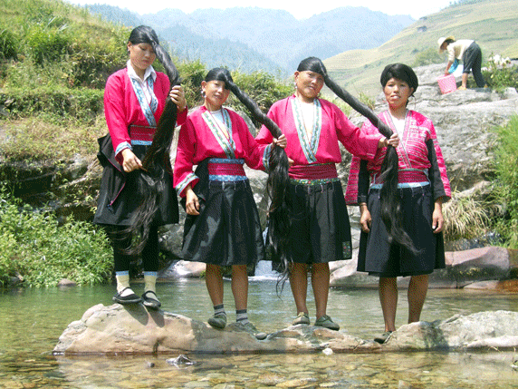 Zhongliu es una aldea de aire rústico colgada de la ladera de la montaña, puentes de piedra, casas de madera rodeadas de arrozales, y caminos empedrados. Las mujeres yao son famosas por no cortarse nunca el pelo ya que simboliza el estatus social de la chica. Por 20