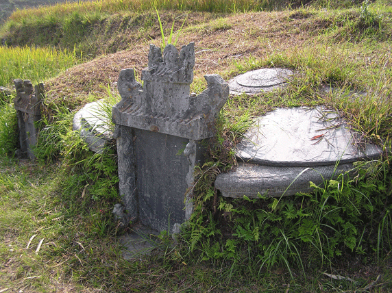 Día 1. Visita al pueblo yao de Zhongliu. Empezamos con una ascensión hasta el ViewPoint 1 de unos 30 minutos. Hay unas vistas fantásticas de Ping'An, y una pequeña cabaña que nos protege del sol abrasador. Desde aquí a Zhongliu se tarda entre 1:30h y 2h. El camino no tiene perdida, y si dudáis preguntad a la multitud de mujeres Yao que se os aparecerán por doquier. Todo el paisaje esta dominado por las terrazas de arroz, alguna zona boscosa de unas pocas decenas de metros y el río al final del camino. Quizás lo más interesante es ver las tumbas que en determinadas zonas bordean el camino, las más recientes adornadas con colores vivos y papeles reflectantes que se ven desde muy lejos.