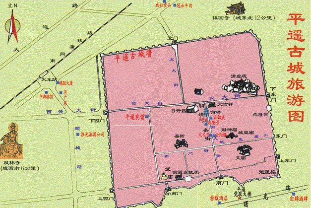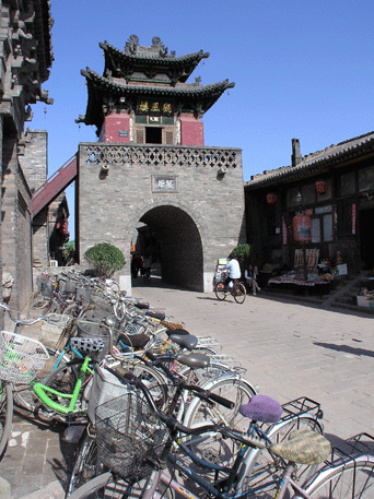 Pingyao es una pequeña ciudad de 40.000 habitantes a mitad de camino entre Pekin y Xi'an. Fundada en el siglo XIV, mantiene buena parte de su arquitectura original de las épocas Ming y Qing, además de conservar la muralla original construida en 1370 que rodea el casco antiguo. El ambiente es plenamente feudal, la Torre de la Campana ocupa el centro, las calles están adoquinadas y adornadas con farolillos rojos, las casas son de estilo tradicional con amplios y bonitos patios, templos, antiguas oficinas de cambio convertidas en museos, tiendas por doquier, restaurantes... Toda la ciudad, dominada por el color gris de ladrillos y tejas, es un gran monumento. Patrimonio de la Humanidad desde 1997.