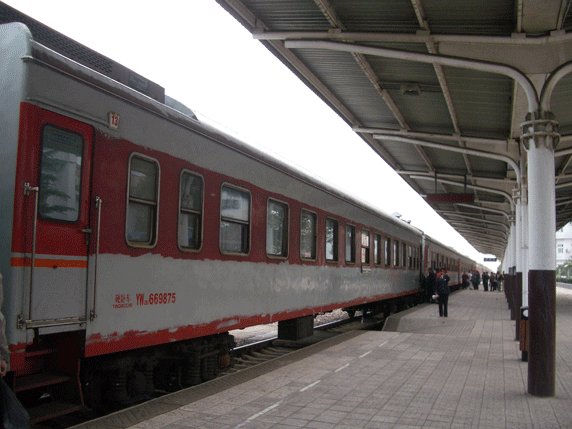 Lo más habitual es venir desde Beijing, el tren 203 sale de las West Station a las 20:00 y llega a Pingyao a las 6:00. Hay trenes nocturnos a Xi'an aunque no siempre es fácil encontrar plaza. En caso de problemas se puede acudir a la estación de Taiyuan, a una hora de camino.