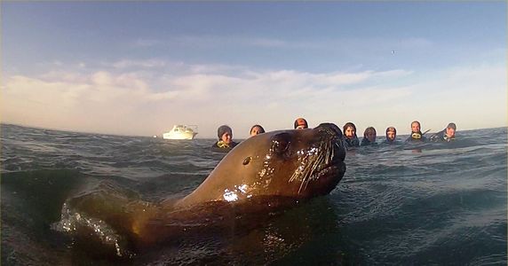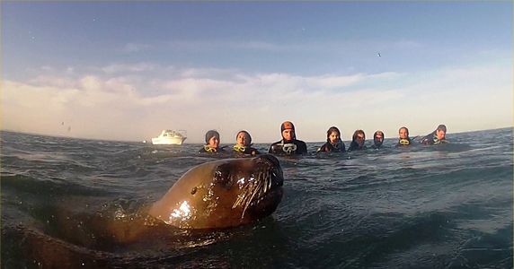 Lobo Larsen. Cuesta 850 AR$ + 150 AR$ el video y las fotos con Gopro. Será una inmersión en snorkel a las 18:00 de la tarde ya que debe coincidir con la marea baja, nos apetecía mas el buceo pero queda descartado pues cogemos un avión en menos de 24h.