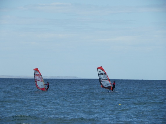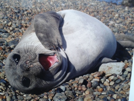 A mi me parece que intentan hacer negocio todo el año de un producto que es estacionario. Hay otras épocas del año en que solo hay hembras, alevines y crías, y por tanto se tiran al agua sin problemas incitadas por la curiosidad, pero como quieren sacar dinero todo el año pasa lo que pasa. Estos centros solo viven de esto, porque en la "capital del buceo argentino" solo hay tres pecios y una docena de especies marinas, aquí nadie en su sano juicio viene a bucear. Es cierto que vimos fotos de días anteriores, de turistas que conocimos, y era otra cosa. Supongo que también influyó la fuerte tormenta que cayo el día anterior y que dejó una visibilidad de apenas unos centímetros. Me imagino que se juntó todo un poco, el tiempo, la visibilidad del agua, los animales y una mala elección de centro. Sé que hay gente que ha salido muy contenta de esta experiencia, pero no es nuestro caso.