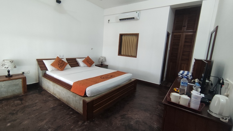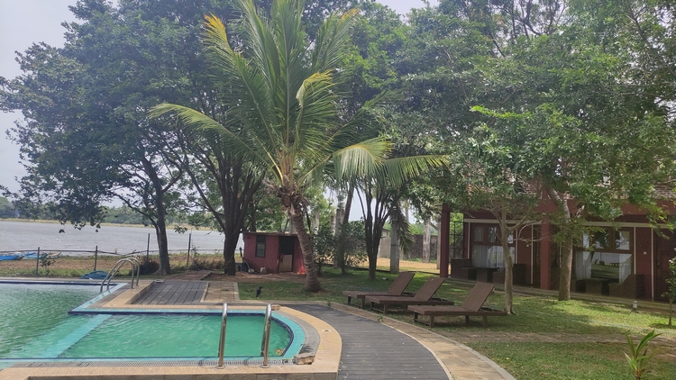 Pharo Lake, 35$. Ubicado junto al lago, a diez minutos de las ruinas. Habitación doble y espaciosa con baño privado, terraza con vistas a la piscina, ventilador, aíre acondicionado y restaurante con grill. Parquing y desayuno incluido. Local breakfast: pol sambol, chicken curry, dahl curry, rotti, y string hoopers; western breakfast: huevos fritos con salchicha Frankfurt, tostadas con mantequilla y mermelada. Plato de fruta, té y zumo en ambos.