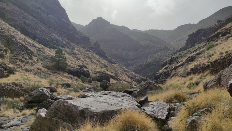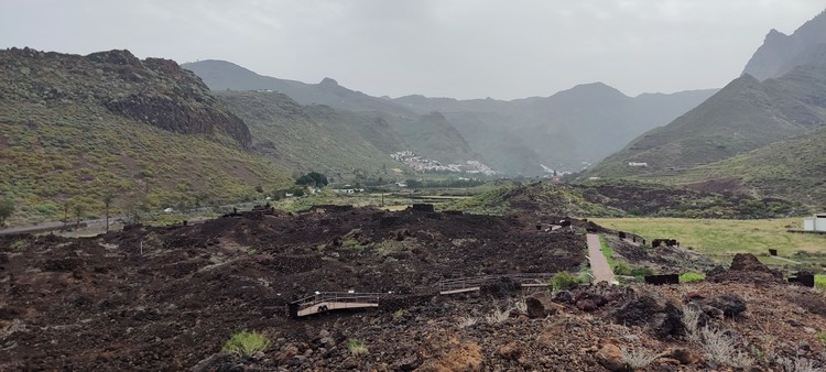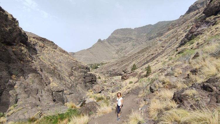 Cerca del pueblo de El Risco se encuentra el Sendero de el Charco Azul, uno de los pocos rincones de la isla con agua todo el año. En época de lluvias cae una cascada directamente sobre él y hace que avance el agua a lo largo del barranco. Para llegar hasta allí hay que seguir un sendero cómodo, prácticamente llano, de unos dos kilómetros de longitud, que discurre paralelo al cauce del barranco, así que se va viendo agua (escasa cuando estuvimos) durante todo el camino..
