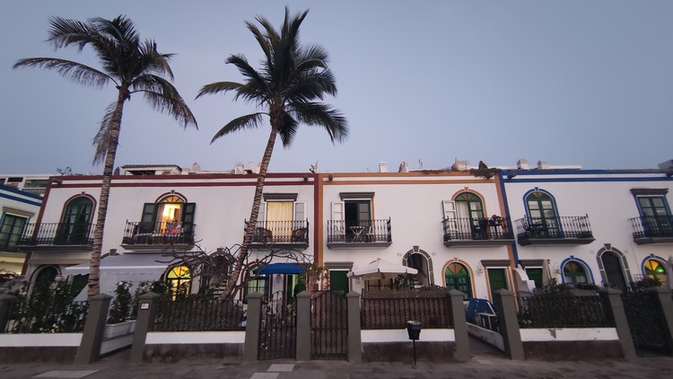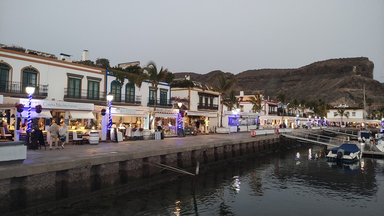 Puerto de Mogan esta situada entre la pequeña península que forma el pueblo y un espigón que parece ir en su busca, formando una ensenada que la protege del oleaje del océano Atlántico. Es un lugar muy turístico, el paseo marítimo esta lleno hoteles, bares y restaurantes, y en la playa abundan las hamacas, tumbonas y sombrillas. La zona mas interesante es el casco antiguo de típicas casitas mediterráneas de colores, frente al puerto pesquero, conocido como la Venecia de Canarias, por los canales y puentes que lo atraviesan. Es la mejor zona para