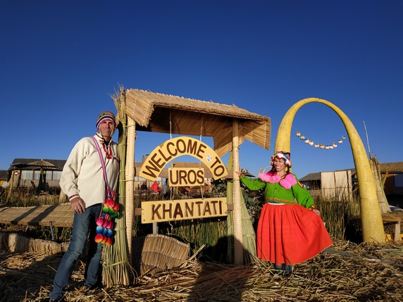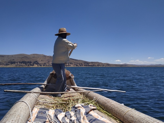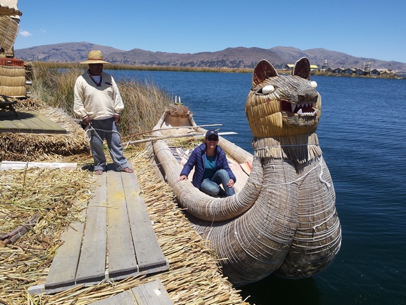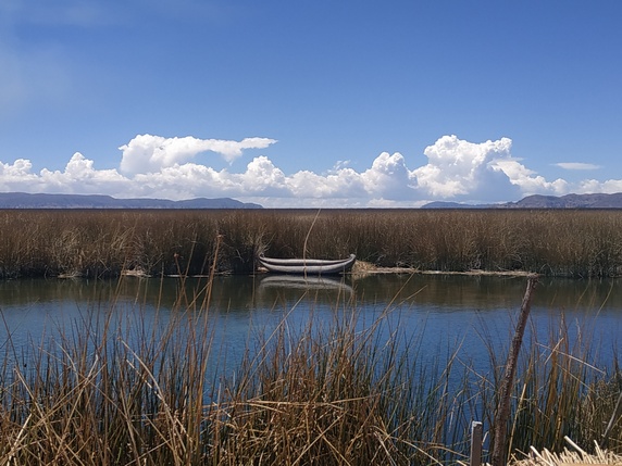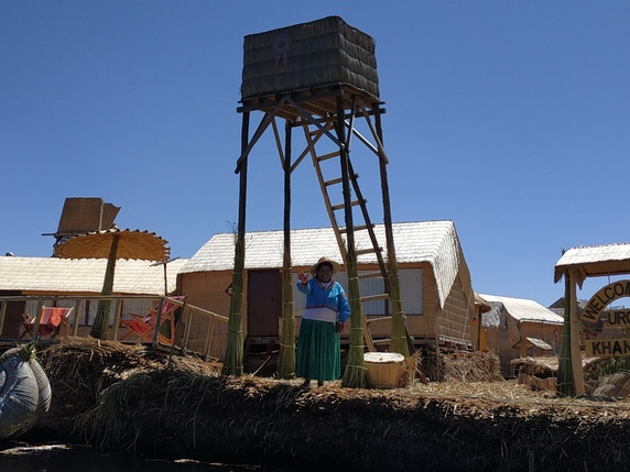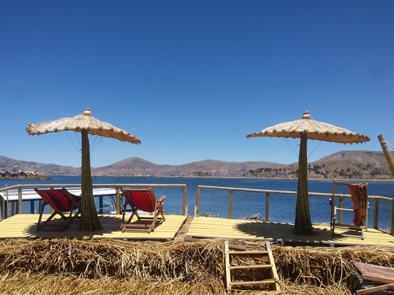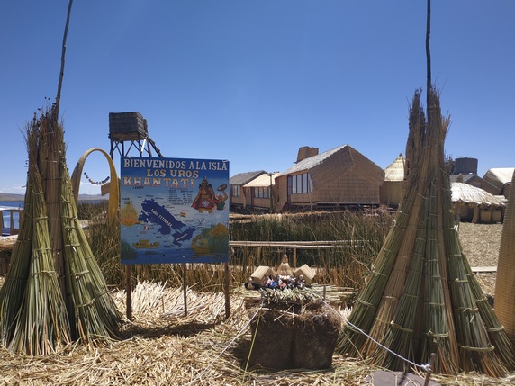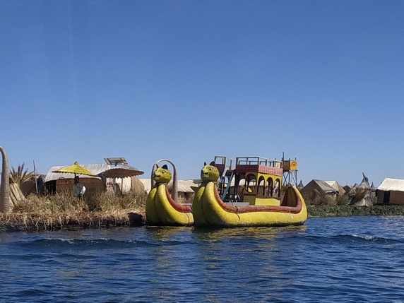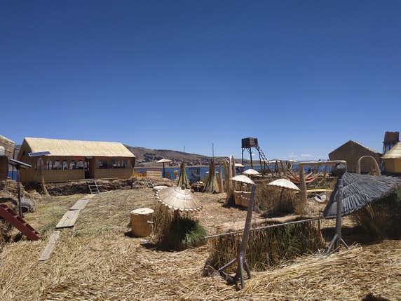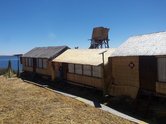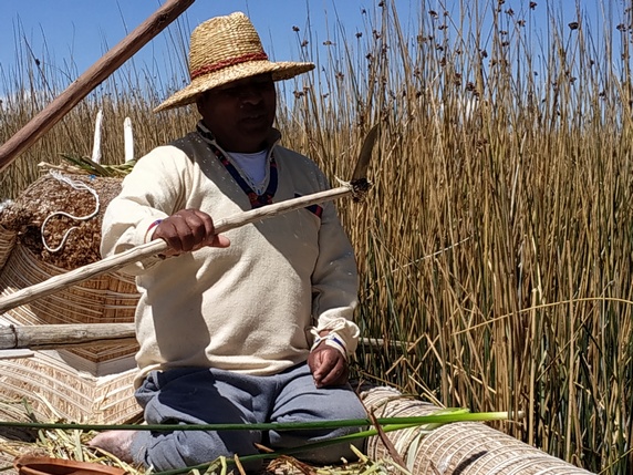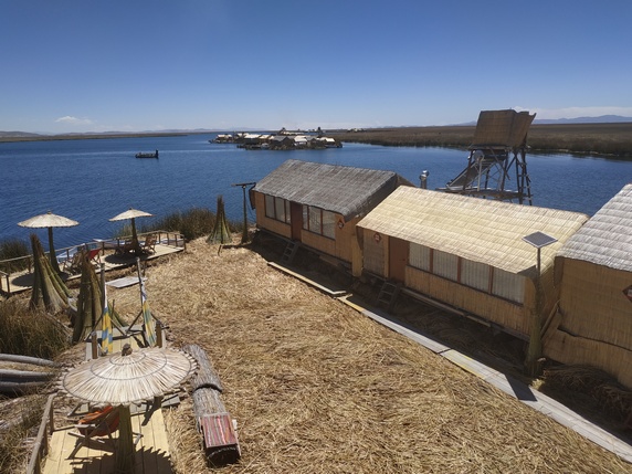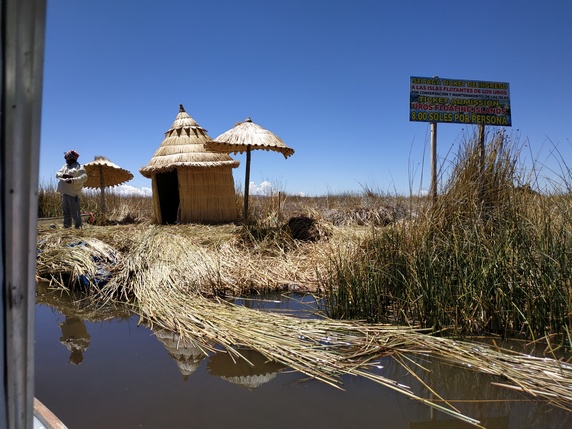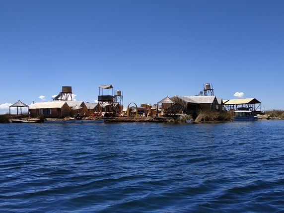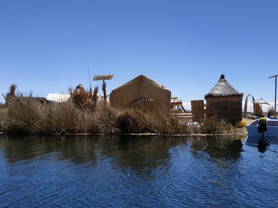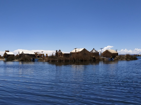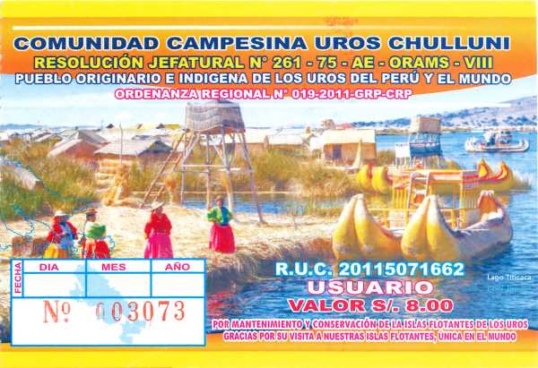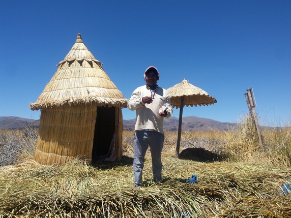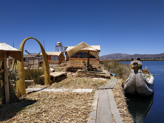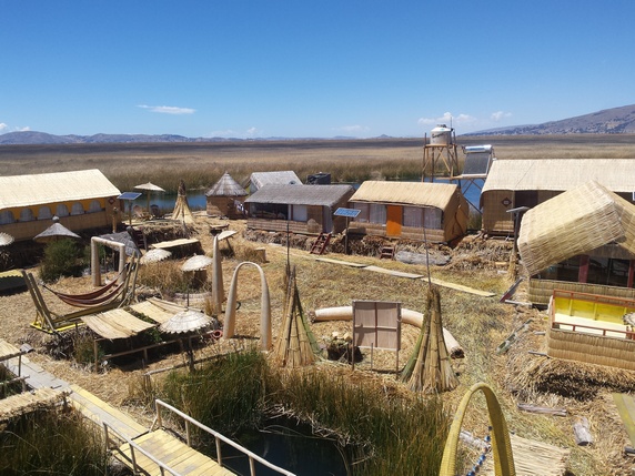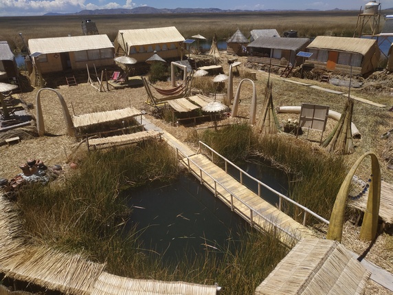 islas flotantes artificiales hechas de un junco llamado totora. Este se teje formando una capa natural que hay que ir renovando conforme se va pudriendo por efecto del agua, y que con el paso de los años superará los tres metros de espesor, y sobre esta capa levantan sus viviendas también de una malla tejida con totora. Incluso las barcas están hechas con este junco. Su actividad principal es la pesca, de carácter artesanal y en muchos casos de subsistencia, y la artesanía tradicional, ropas, alfombras, bolsos, chullos, o pequeñas balsas a escala hechas de totora. En los últimos años está en auge el turismo vivencial, las familias de una isla se organizan para alquilar pequeñas cabañas, combinándolo con actividades tradicionales. Pero no todos han recibido con agrado esta nueva fuente de ingresos, son una comunidad de unas 500 islas y en cada una de ellas vive entre una y cinco familias, y de momento solo algunas de ellas se dedican a recibir turistas como si de un hotel se tratase.