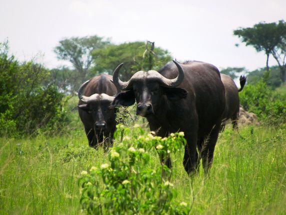 varios, facóqueros, búfalos, Uganda kobs, pájaros de todo tipo,