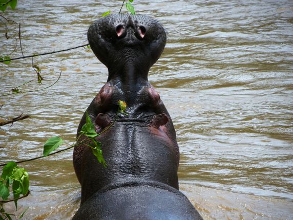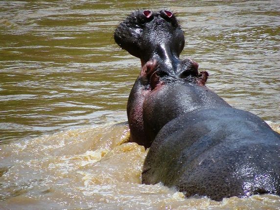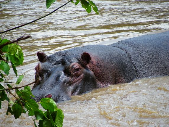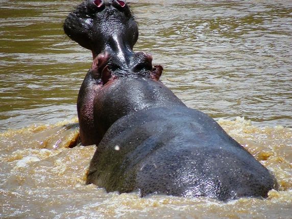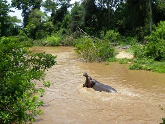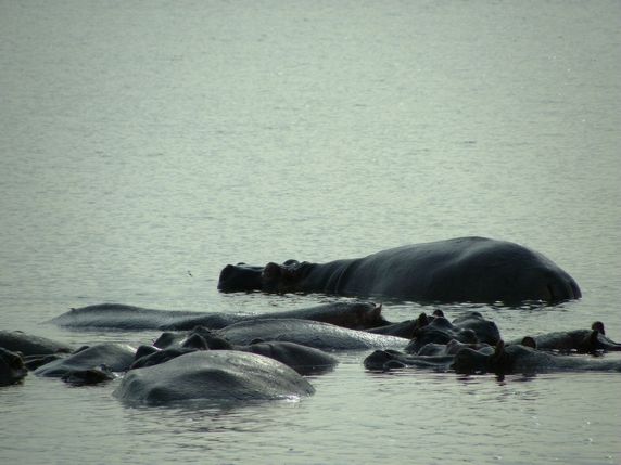 Cuando nos acercamos al río vemos un pequeño grupo de hipopótamos.