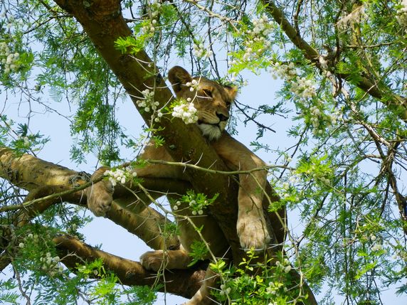 Ishasha, en la zona sur del parque, es conocida por sus leones trepadores.