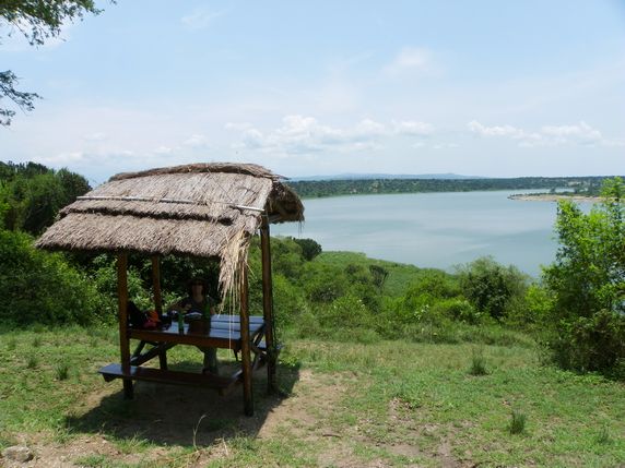 vistas al lago Edward. La comida no es nada del otro jueves, pero