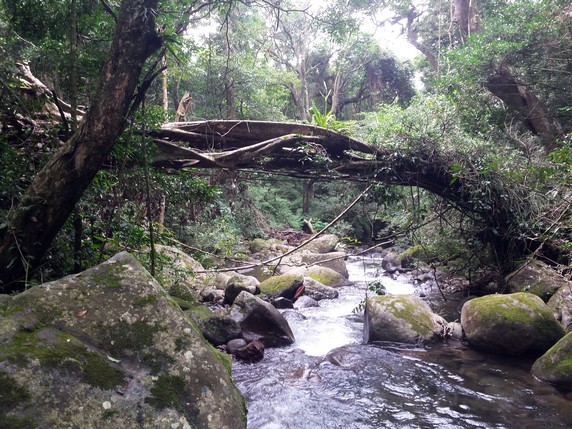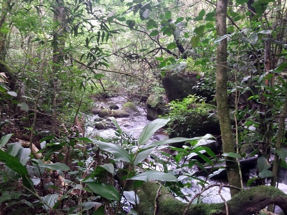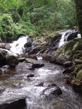 catarata del bosque encantado, una pequeña cascada de agua fría. Cruzamos el arroyo Zopilota ayudados de cables guía que van de lado a lado, e inmediatamente otro desvío nos lleva a la