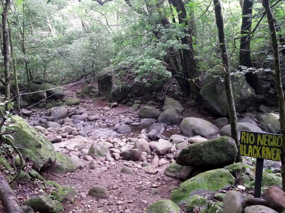 catara Morpho, donde hay un pequeña charca de difícil acceso apta para el baño. El camino principal sigue hasta el río Negro, donde hay que cruzar también ayudados por cables guía. Tomando un desvío a la izquierda, por un sendero lleno de arañas hilo de oro y sus resistentes telarañas, se llega a un estrecho cañón donde una sección del río crea unas pequeñas piscinas de sulfurosas aptas para el baño,