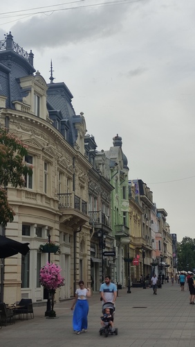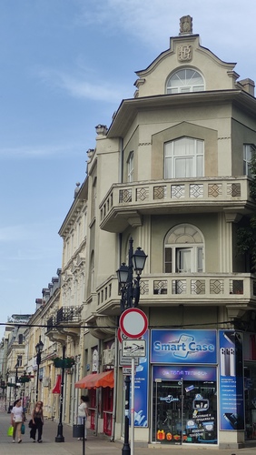 La vía principal es Alexandrovska, una avenida peatonal bordeada de edificios barrocos con tejados puntiagudos, relieves y estatuas en las fachadas pintadas en vivos colores. Es el centro vital de la ciudad, siempre llena de gente paseando, comprando o tomando en las terrazas de los numerosos restaurantes y cafeterías. Toda esta actividad continua en las dos plazas que la delimitan. La plaza Svoboda esta presidida por una escultura de una mujer con una espada sobre un altísimo pedestal, rodeado de jardines de flores, fuentes y tenderetes móviles de helados. En ella se encuentran el Palacio de Justicia y el Ayuntamiento, entre otros edificios solemnes. En la plaza Aleksander Battenberg están algunos de sus edificios mas impresionantes, como la biblioteca o el Museo de Historia. Otra plaza ajardinada con fuentes y numerosos bancos para sentarse a la sombra.